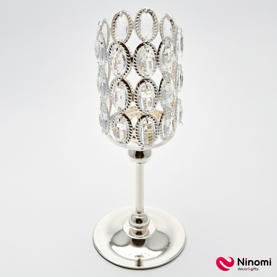 Металлический подсвечник на ножке с кристаллами "Wedding" M серебро