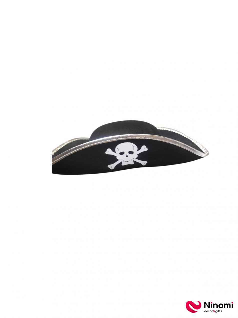 Шляпа "Пират треуголка" с серебряным кантом XL